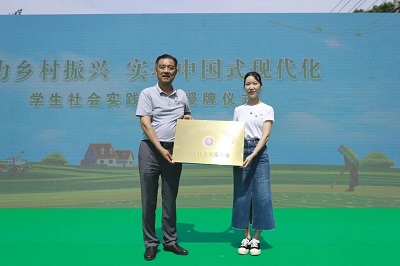 授牌儀式后,查振芹就開展助力鄉村振興的社會實踐活動的意義進行了解讀。她表示我校每年寒暑假都有幾百支隊伍奔赴祖國各地開展豐富多彩的社會實踐,社會實踐是大學生接觸社會、了解國情、增長才干、鍛煉成長的有效方式。“知行合一”實踐團隊作為人文傳媒學院一支優秀的社會實踐團隊,此次來到雙岸社區進行走訪調研,是希望能夠在調研過程中收集農民急難愁盼的問題,為鄉村振興提供理論和實踐建議。經過前期調研,團隊針對農產品滯銷問題所提出的“互聯網+果樹認養”項目,得到了社區領導的認可和采納。查振芹鼓勵實踐團隊將所學知識運用在田間地頭,推動鄉村事業創新發展,以鄉村振興助力中國式現代化,更好地實現“知行合一”。最后,對雙岸社區為推進基地共建所做的大量工作,以及為人文傳媒學院在社區的實踐教育提供的資源和支持表示感謝,并展望了人文傳媒學院與雙岸社區的合作前景。