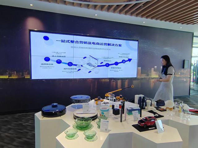圖為工作人員介紹一站式營銷及電商運營解決方案 多彩大學(xué)生網(wǎng)通訊員 吳玲玲 攝