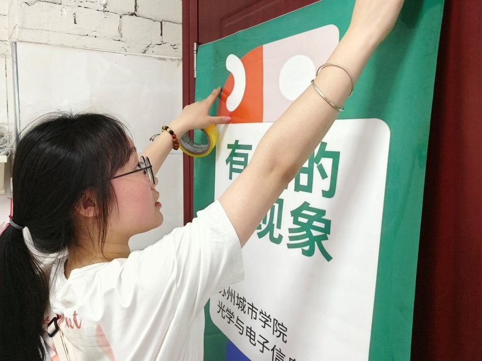 7月9日,浙江金華小分隊負責人周羽彤帶領成員在浙江省金華市義烏市縣前街開展了一場精彩紛呈的物理科普宣講活動。本次活動面向1-3年級小學生,主題為“有趣的光”。活動開始前,周羽彤與成員討論、試講,制定了針對不同年級學生的宣講方案,并設計了宣傳海報。