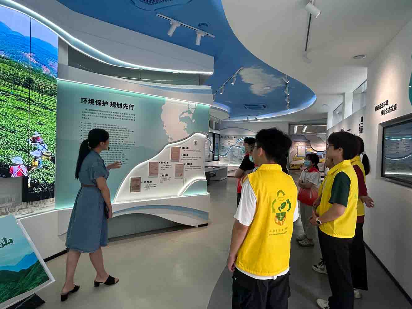 圖為實踐團成員在工作人員帶領下學習湛江市生態政策的變化