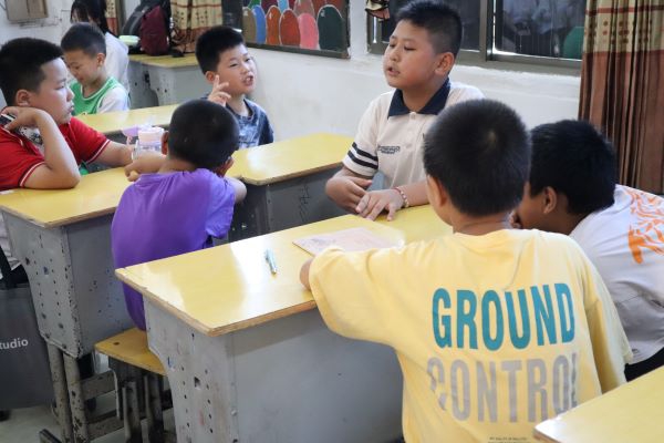 課程伊始,楊柳以動(dòng)畫片為切入點(diǎn),引導(dǎo)學(xué)生們進(jìn)入課堂。而后,通過預(yù)先向?qū)W生們提出問題,提醒其認(rèn)真觀看視頻片段,學(xué)生們都全神貫注,紛紛對(duì)問題進(jìn)行搶答,效果顯著,課堂氛圍十分活躍。為幫助學(xué)生更好地進(jìn)行配音,楊柳帶領(lǐng)學(xué)生們逐句分析和練習(xí)視頻中的對(duì)話,力求發(fā)音標(biāo)準(zhǔn),語調(diào)貼切、自然。學(xué)生們都興致勃勃,透過課堂上他們亮晶晶的眼睛,實(shí)踐團(tuán)能感受到他們對(duì)知識(shí)的渴望。在不斷的練習(xí)后,學(xué)生們從單詞到短語,再到句子,逐一擊破,從讀著拗口到流利地道,進(jìn)步飛速正是他們認(rèn)真專注的體現(xiàn)。課堂的最后,不少學(xué)生躍躍欲試,分組進(jìn)行配音,展示自己的練習(xí)成果,看著他們臉上高興的神情,實(shí)踐團(tuán)成員也由衷地感到欣慰。