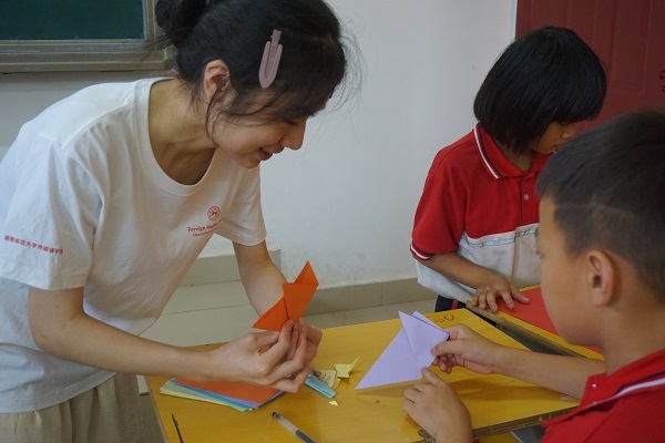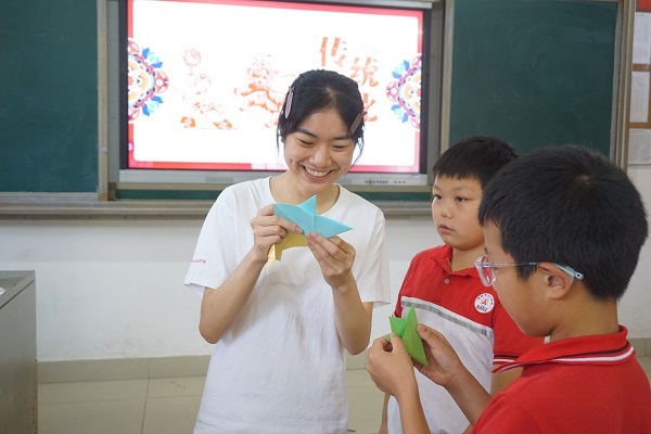 7月14日上午,湖南師范大學外國語學院赴漣源市湖南師范大學附屬三一學校暑期社會實踐團開展“手中剪紙生萬物,工巧殊勝盡芳華”手工剪紙教學活動。實踐團教學組組員雷斯羽擔任主講人。