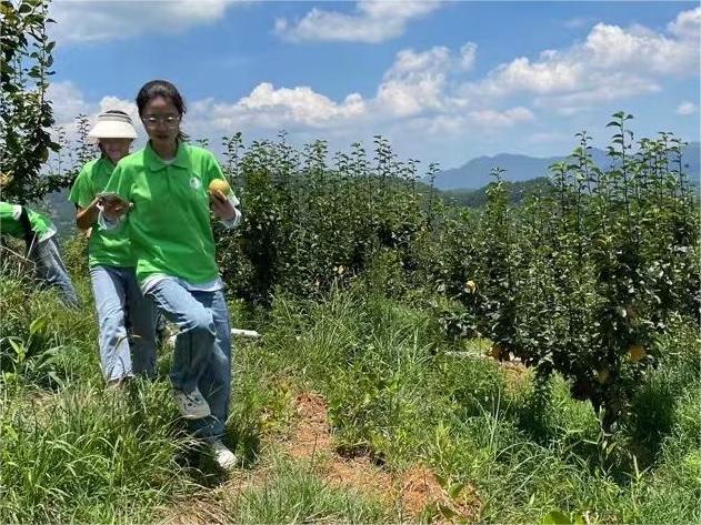 圖為實踐隊隊員開心地采摘果實 藍小媛攝
