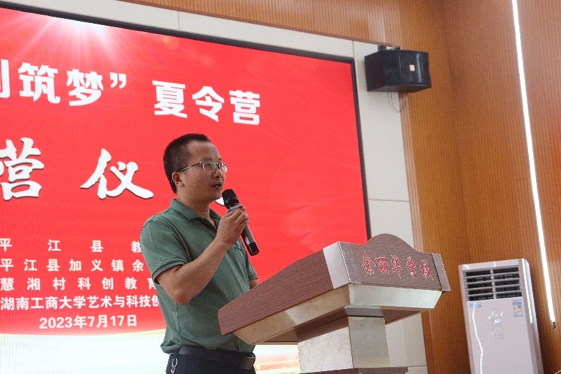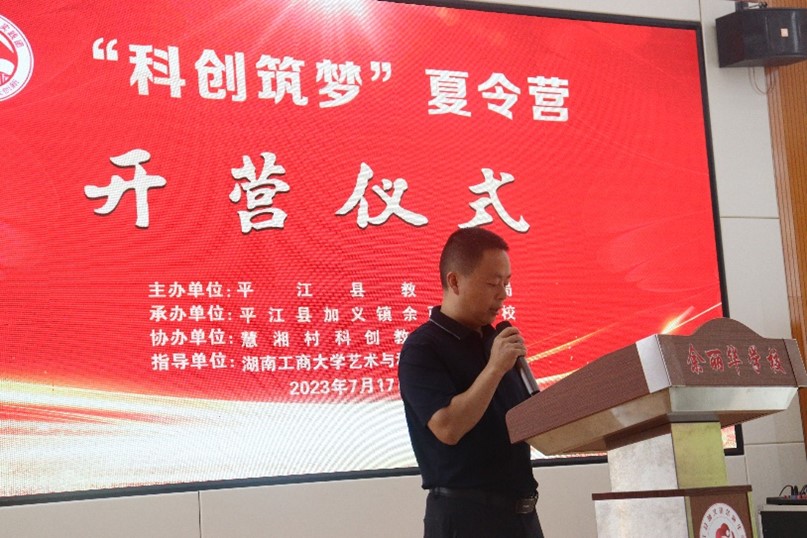 7月17日上午,湖南工商大學慧湘村科創教育實踐團在岳陽市平江縣加義鎮余麗華學校舉行科創夏令營開營儀式。