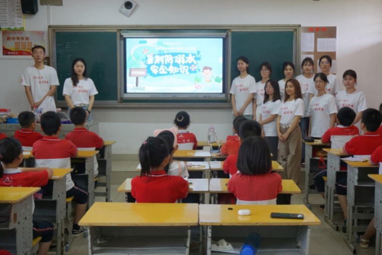 為增強學生安全防范意識,響應對接學校教育要求,7月8日上午,湖南師范大學外國語學院赴漣源市三一學校暑期社會實踐團開展“撐起生命之傘——暑期防溺水安全知識”安全教育課程。此次課程由團隊成員陳冬悅進行主講。