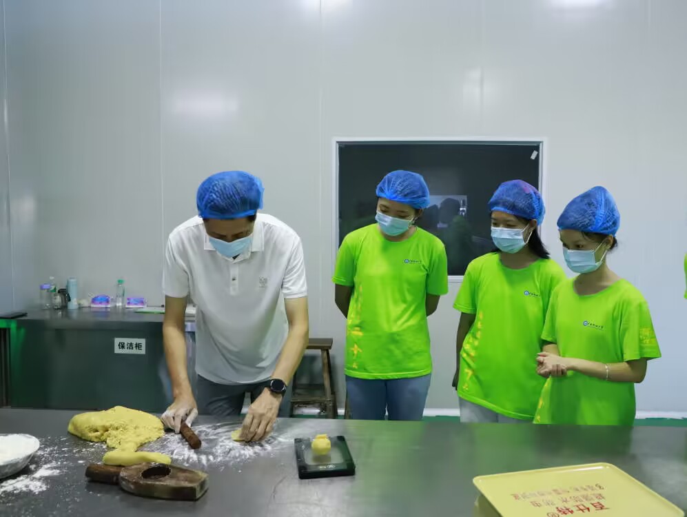 7月11日,文學(xué)院團委學(xué)生會“歸雁成行,助力鄉(xiāng)村”志愿服務(wù)隊前往合浦鼎興餅業(yè)有限公司走訪參觀,并進行月餅制作實踐活動。