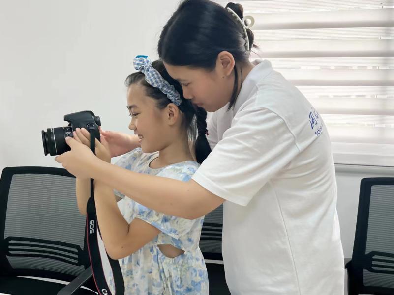 圖為實踐隊為孩子們開展興趣活動,教孩子們使用相機。宋雨達攝