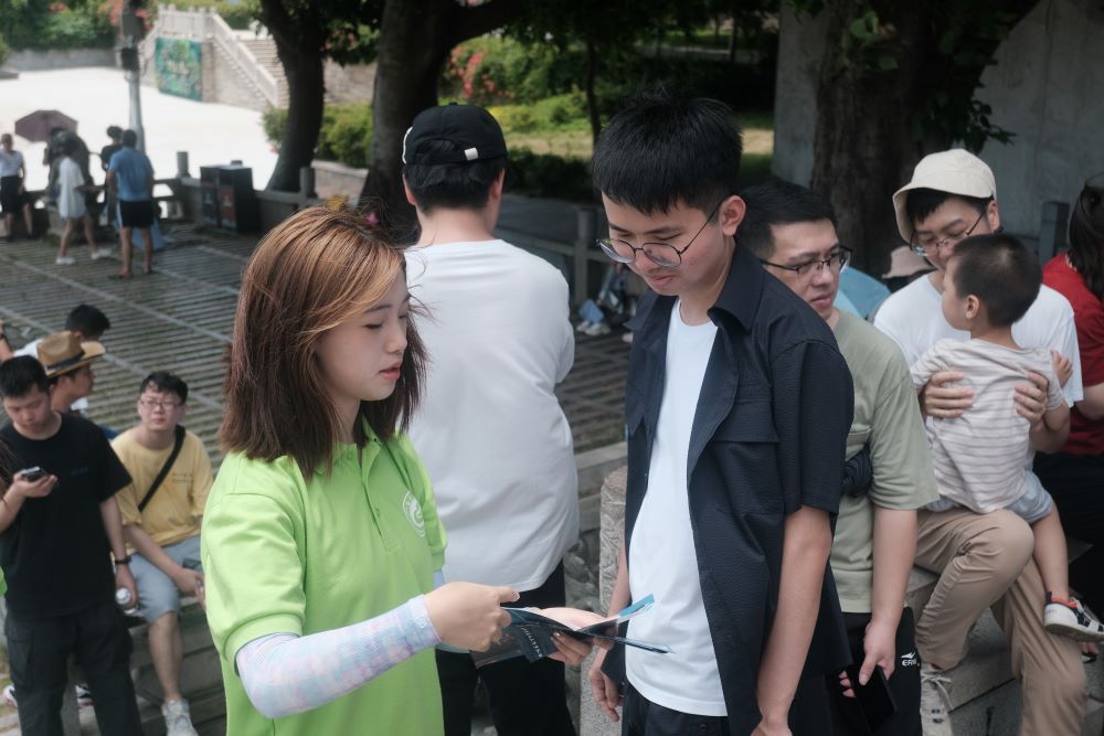 圖為東山游客在南門灣景區填寫垃圾分類調查問卷