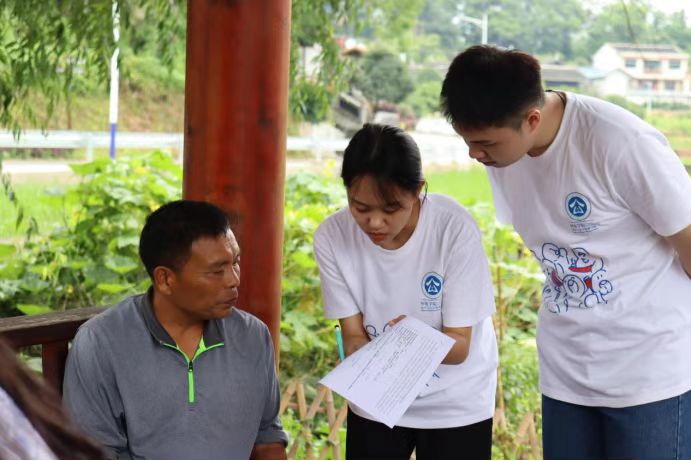 在為村民們展示普通話推廣與普法相結(jié)合“兩開花”后,“三公”志愿服務(wù)團也馬不停蹄的對當(dāng)?shù)卮迕襁M行調(diào)研,志愿服務(wù)團進入庭中,拉近與村民們的距離,心細的詢問了多個問題并對村民們的普通話進行宣傳和推廣。