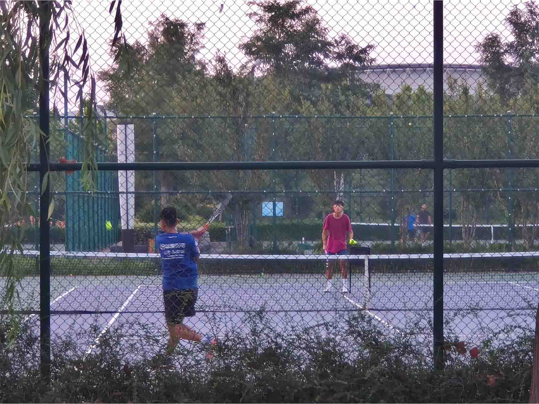 圖為市民正在東營市奧體全民健身中心室外場地打網球。