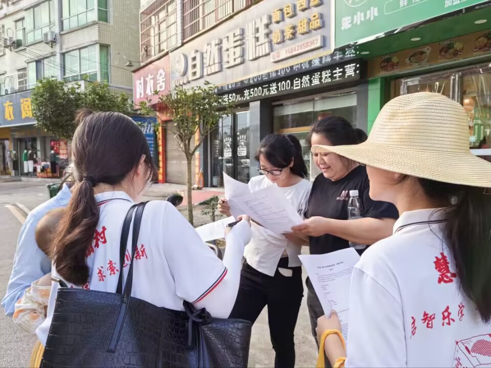圖為加義社區(qū)劉主任填寫調(diào)查問卷 慧湘村科創(chuàng)實(shí)踐團(tuán)供圖