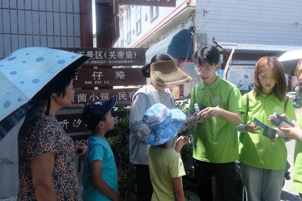 在發展的同時,要同時注重環境效益,秉持著人與自然和諧共生的理念,實踐隊不僅發放了有關于環境保護的文創、宣傳冊,以及收集有關環境保護的調查問卷,進一步了解人們環境保護意識,而且通過開展宣講會、打掃景區垃圾等實際行動推動綠色發展。