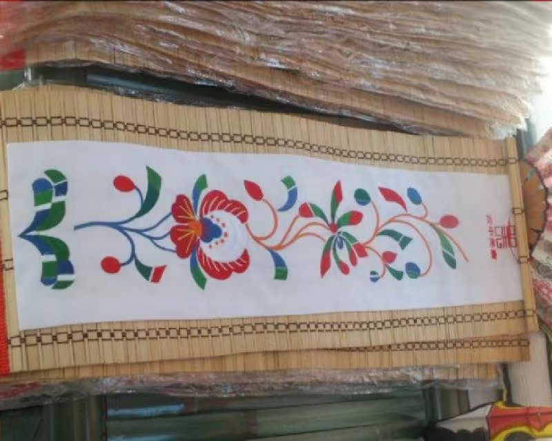 羌繡有如下的工藝流程:1、羌繡制稿。繡娘們按照實物畫稿,或憑想象隨手描制樣稿。2、選料。根據畫稿的內容、用途不同,選擇不同質地和顏色的底料,如果是衣飾就必須能洗耐磨,則選用麻布或純棉布,作為藝術品及高級贈品則選用絲鍛作為底料。勞動時的服裝及用品,則使用的線采用了耐磨、耐洗的棉線、混防線和膨體紗等材料。3、樣稿上料制作羌繡將經過精心挑選的畫稿,用帶有顏色的筆在要繡制的底料畫上圖案,將紋樣用繡針和線固定在要繡制的地方,然后選擇自己喜歡的線進行繡制,這樣整齊均勻的針腳會把剪出來的紙樣遮蓋住。4、精心繡制底料上繃后即可繡制。小型繡品直接拿到手上繡制,大中型壁掛,入屏的大幅必須上到圖繃或大型方繃上繡制。在繡制過程中絲線、絲緞及其它淺色底料,必須保證干凈。