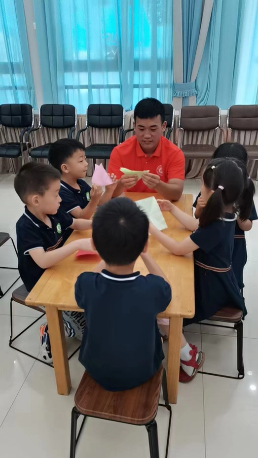 圖為隊員們教小朋友們制作折紙火箭,激發孩子們對兩彈一星的興趣。通訊員 王雨婷 攝