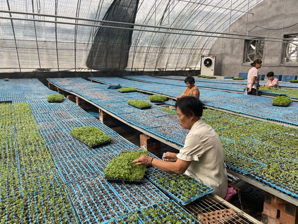 實踐團成員與王高偉深入交流,了解到了該育苗基地的基本情況。據王高偉介紹,該育苗基地規模大,種苗優質且銷售范圍廣,除了7月或8月有一個月的休棚期外,全年基地的所有育苗棚都屬于訂單旺季,為周邊400余人提供了穩定的就業崗位,帶動村集體、村民年增收1000余萬元。隨后,實踐團與王高偉就育苗方法等問題進行交流。