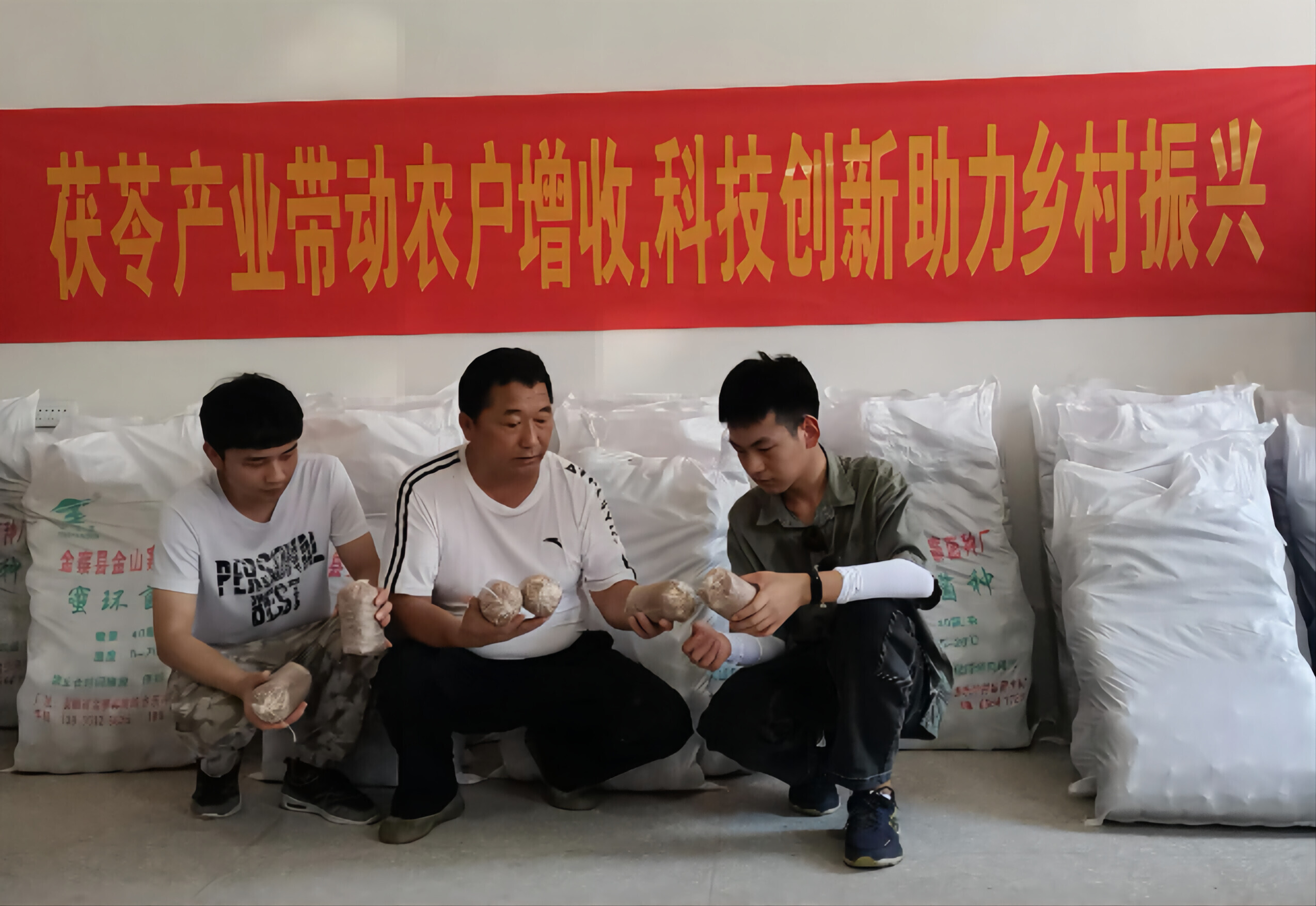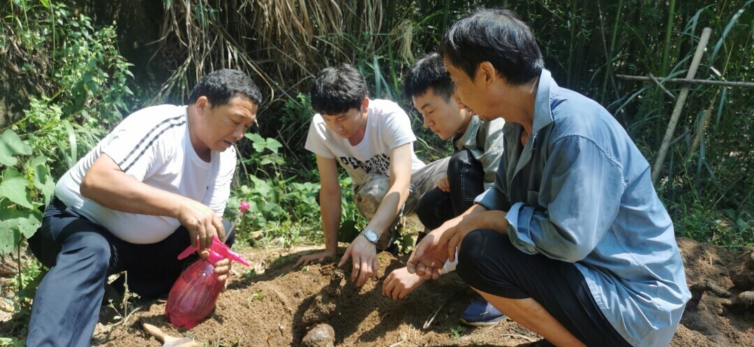 圖為團(tuán)隊(duì)成員參與茯苓養(yǎng)護(hù)采收過程。