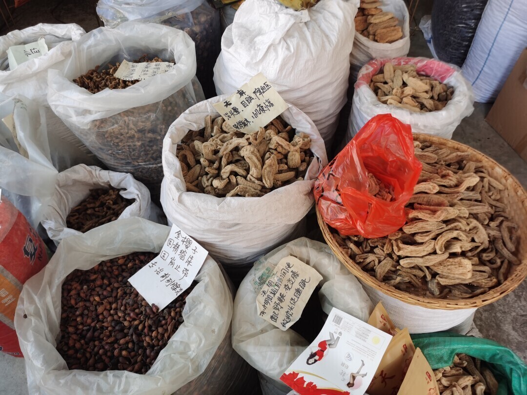 圖為市場(chǎng)內(nèi)店鋪所售藥材。