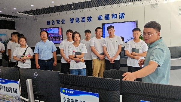 接下來,實踐團到金河煤礦進行參觀學習。先后來到金河煤礦調度中心、洗煤廠等工作現場進行參觀,每個工作場所都有專門的工作人員進行詳細的講解介紹