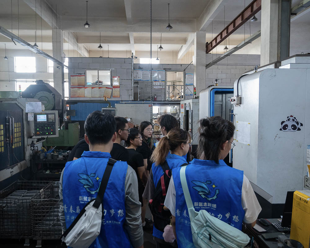 在工業4.0的大背景下,中國制造業面臨著巨大變革。實踐隊前往中鼎機械有限公司進行參觀考察,在車間負責人李主任的帶領介紹下,實踐隊切實了解到強工復興是溫嶺發展的首要任務。要以加快建設“兩城兩湖”、奮力推進“兩個先行”為主線,堅定不移推進強工興市、創新驅動、城鄉融合、品質生活、現代治理“五大戰略”,真正做到促進當地經濟發展,賦能鄉村振興。