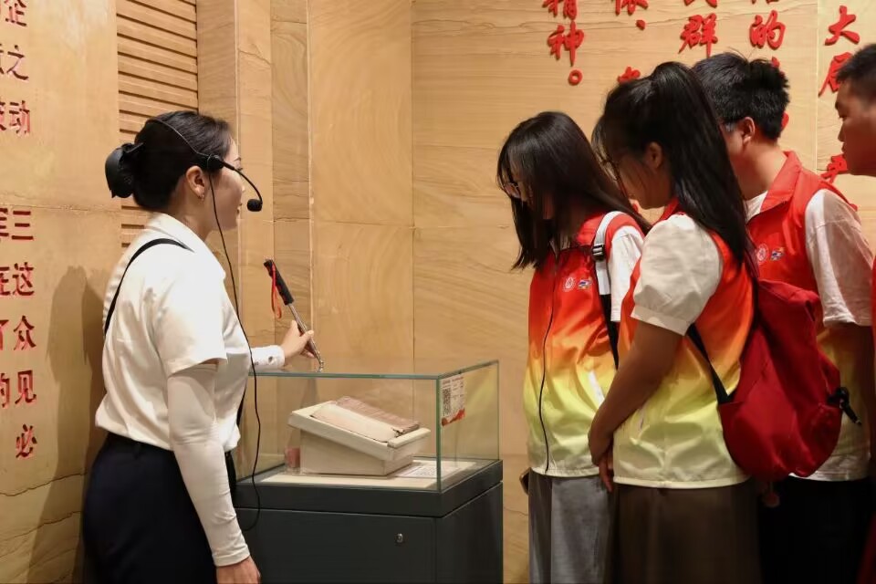 在講解員的帶領下,團隊首先來到博物館大廳,對照著地理分布圖對四渡赤水的地理局勢與當時的路線進行了初步了解,跟隨講解員的腳步進入展館了解學習并駐足觀看各類紅色文物與文字資料。伴隨著講解員對這段歷史的細致講解,對四渡赤水的過程有了更加深刻的認識。通過介紹、展板和實景再現,團隊成員清楚地看到了紅軍英勇奮斗、舍生忘死的場景,他們用血肉之軀書寫了革命的壯麗篇章,讓團隊成員深切感受到了他們舍生取義的英雄精神。