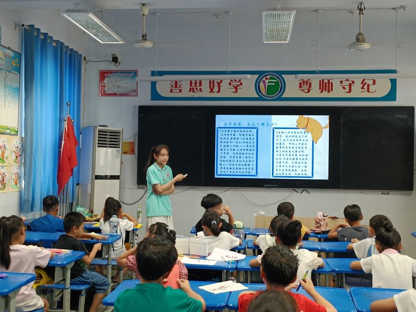 多彩大學生網7月21日電(通訊員 趙成城) 為深入學習貫徹習近平新時代中國特色社會主義思想,全面貫徹落實黨的二十大精神,引導和幫助廣大青年學生上好與現實相結合的“大思政課”,在社會實踐中厚植家國情懷、了解國情民情、增長知識才干、激發挺膺擔當,立志做有理想、敢擔當、能吃苦、肯奮斗的新時代好青年,安陽師范學院“童心向黨,筑夢成長”豫才鄉村振興推普支教隊在寶蓮寺鎮東風小學開展了一系列支教活動。