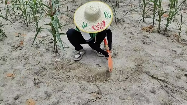 活動過程中他們帶著專業儀器和工具準備進行土壤采樣。有土鏟和小平鏟,密封袋等。利用對角線布點法,確定好采樣的深度,取樣深度為0~20cm。他們將采樣點分布在不同海拔高度和土地類型的區域,并詳細記錄每個點位的土質和海拔高度。通過這種方式,他們希望能夠全面了解該地區土壤的特性。以便于綜合確定栽種的作物。