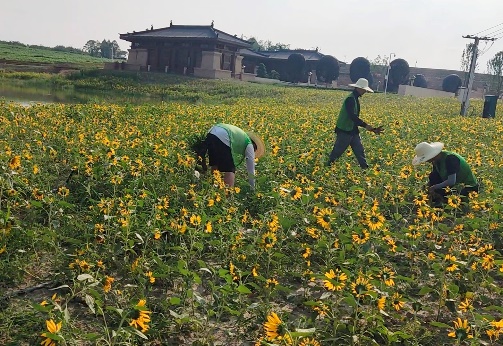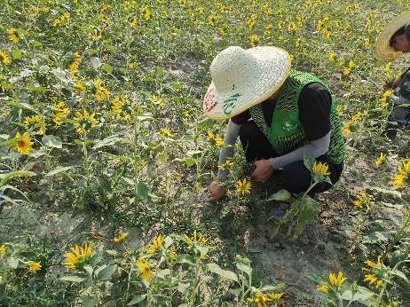 團隊成員們運用了現代農業技術,為當地向日葵種植地進行了人工除草和鋪設微灌帶等工作。通過昨日調查研究得出牧馬山的土質為沙土且偏干旱。因此,農科小隊選擇將現代科技與傳統農業相結合,為當地農民帶來了一份奇特又有益的便利。在這次清理活動中,農科小隊成員們們首先利用人工對向日葵種植地里的雜草進行了徹底地清理。較大程度地減少后期雜草與向日葵爭搶水分和營養,同時能夠疏松表土,減少地表徑流,增加土壤的滲透性,間接性提高向日葵的產量。