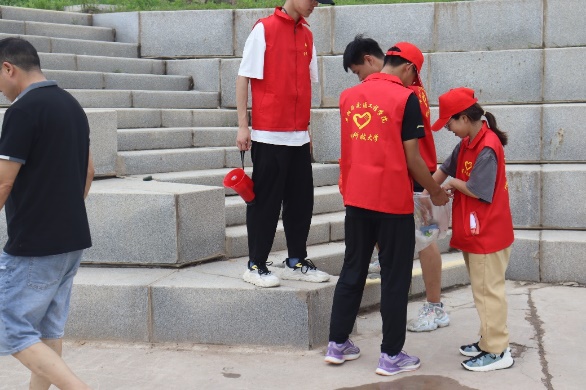 7月5日團隊成員到達小浪底水利樞紐風景區進行深入調研與學習,在參觀期間,團隊成員虛心向水利專家請教關于小浪底調水調沙的原理,以及新中國治黃治沙的歷史。近距離觀摩了小浪底宏偉的排沙過程后,各成員也不忘向周圍的旅客宣傳小浪底工程并收集旅客的看法與感想。最后,由一名團隊成員展開演講,向大家提出保護黃河的倡議。在離開之際,團隊成員也自發地將景區內的垃圾進行撿拾清理,為保護黃河守護小浪底盡了綿薄之力!