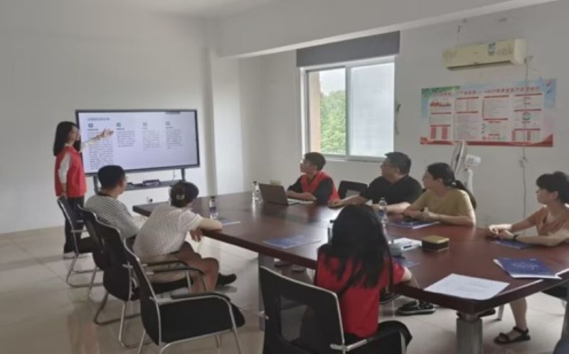 實(shí)踐團(tuán)成員先大致參觀了公司的一些辦公場(chǎng)所,并與公司的員工在環(huán)保產(chǎn)品以及公司在環(huán)保方面的做法進(jìn)行了討論與學(xué)習(xí)。接著,實(shí)踐團(tuán)成員和公司員工一同前往會(huì)議室,在會(huì)議室里各個(gè)成員依次向員工們描述講解了垃圾分類的概況,以及如何踐行垃圾分類的方式方法和垃圾分類的未來(lái)規(guī)劃。