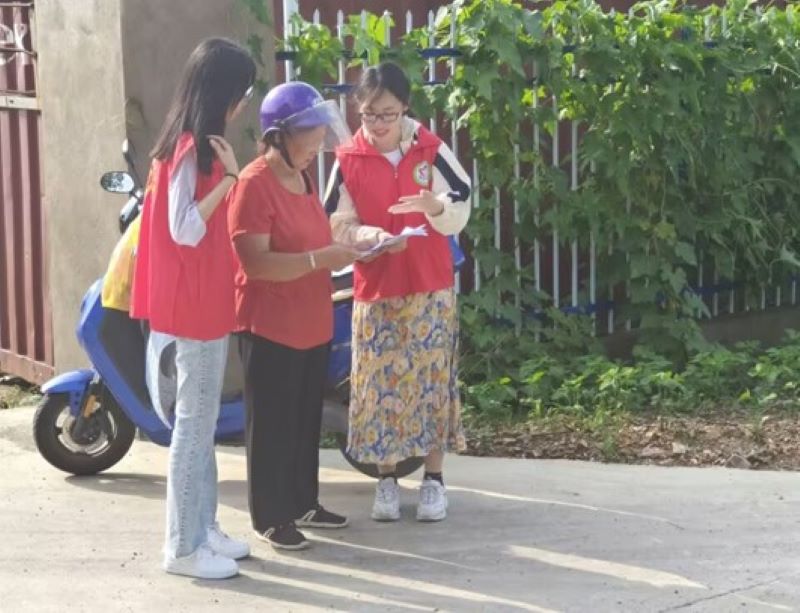 實(shí)踐團(tuán)成員在鎮(zhèn)江農(nóng)村實(shí)地調(diào)研時(shí),恰逢鎮(zhèn)江農(nóng)村一住戶劉女士。成員們與劉女士進(jìn)行了溝通并向她耐心宣傳了二十大主題下綠色環(huán)保的全新的概念和理念。對(duì)于她而言,這些似乎比較概念化,于是,實(shí)踐團(tuán)成員舉了生活中一些常見垃圾分類的例子將抽象化的概念具象化,更好地對(duì)當(dāng)?shù)卮迕襁M(jìn)行了闡釋。過程中也吸引了很多村民的關(guān)注,綠色環(huán)保的知識(shí)在大范圍得到了傳播。調(diào)研路上,成員們各抒己見,一同探討如何更加深入地將綠色環(huán)保理念傳輸給更多村民。