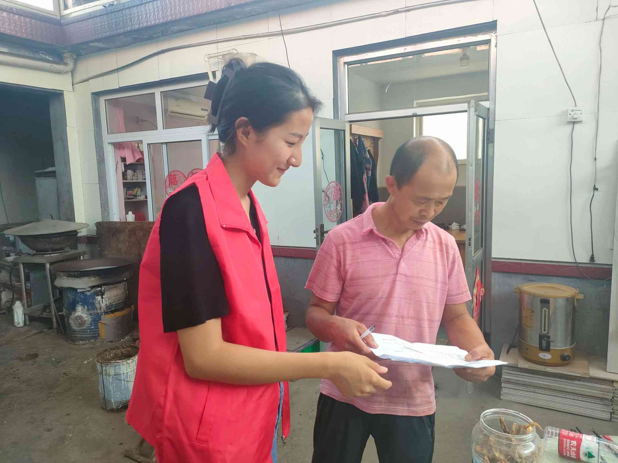 圖為實踐隊員與楊書記等社區(qū)工作人員進行交流。 王亞捷 攝