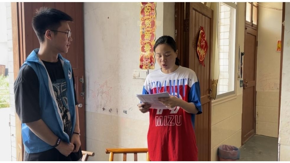 圖為“一夏岳心·筑夢支研”志愿者在實地走訪、問卷調查