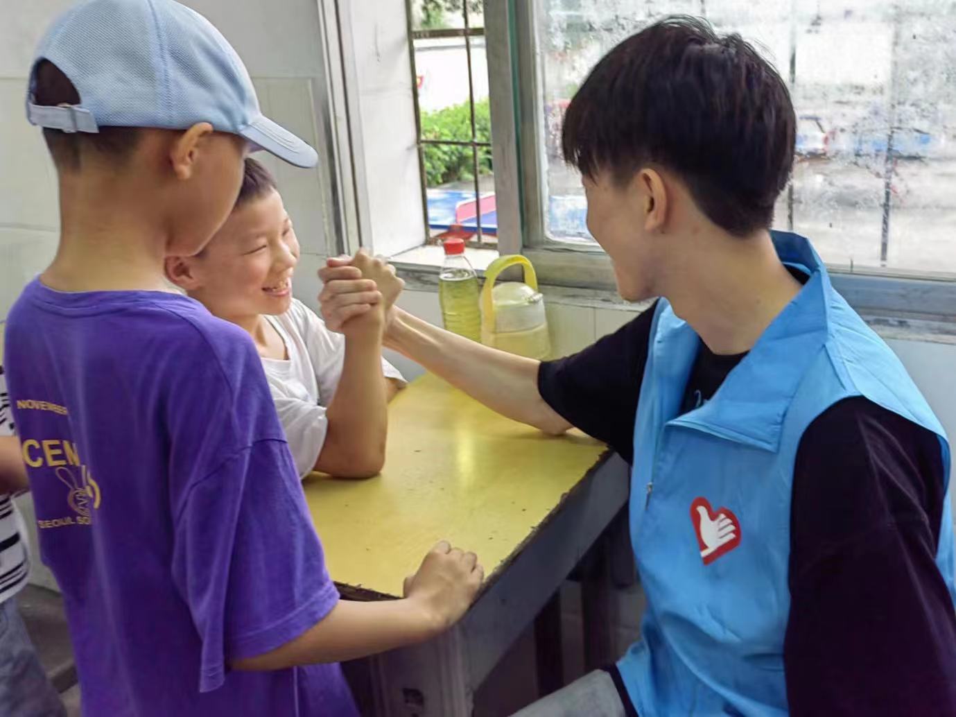 圖為志愿者老師與孩子們在課間一起玩游戲的場景。 通訊員 朱婧 供圖