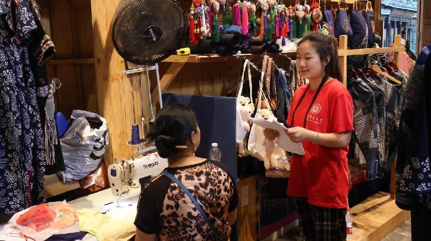 為了解侗寨特色商戶的生活營收狀況,團隊成員們采訪了當地一位仍然堅持手工繡制侗服的阿姨。從淳樸靦腆的師傅口中,團隊成員了解到許多關于侗寨特色手工藝品的現狀。師傅說:“我家幾代人都是做這個的,我也是從小家里教的。”而她將之作為自己終生事業的原因,除了家傳外,還出于自己對于這門技藝的熱愛。前幾年因為疫情,經濟不景氣,客流量少,產品賣不出去,收益少導致當地相關手藝人退出市場以至于相關產業有所萎縮的現狀,師傅表示:“對于傳統技藝傳承者來說,最重要的是始終堅持、熱愛自己的事業。”秉承真誠熱愛的品性,守持認真執著的態度,優秀的工匠,對所從事工作有發自內心的真誠和熱愛,工作的過程就成為滿足興趣、發揮優長、體現價值的過程。工匠精神是一種“慢”姿態,將精益求精的專注融入工作之中。一個國家、一個民族的發展,離不開各行各業勞動者懷著默默耕耘初心,守著工匠精神,傳承中華文化,不斷追求革故鼎新。