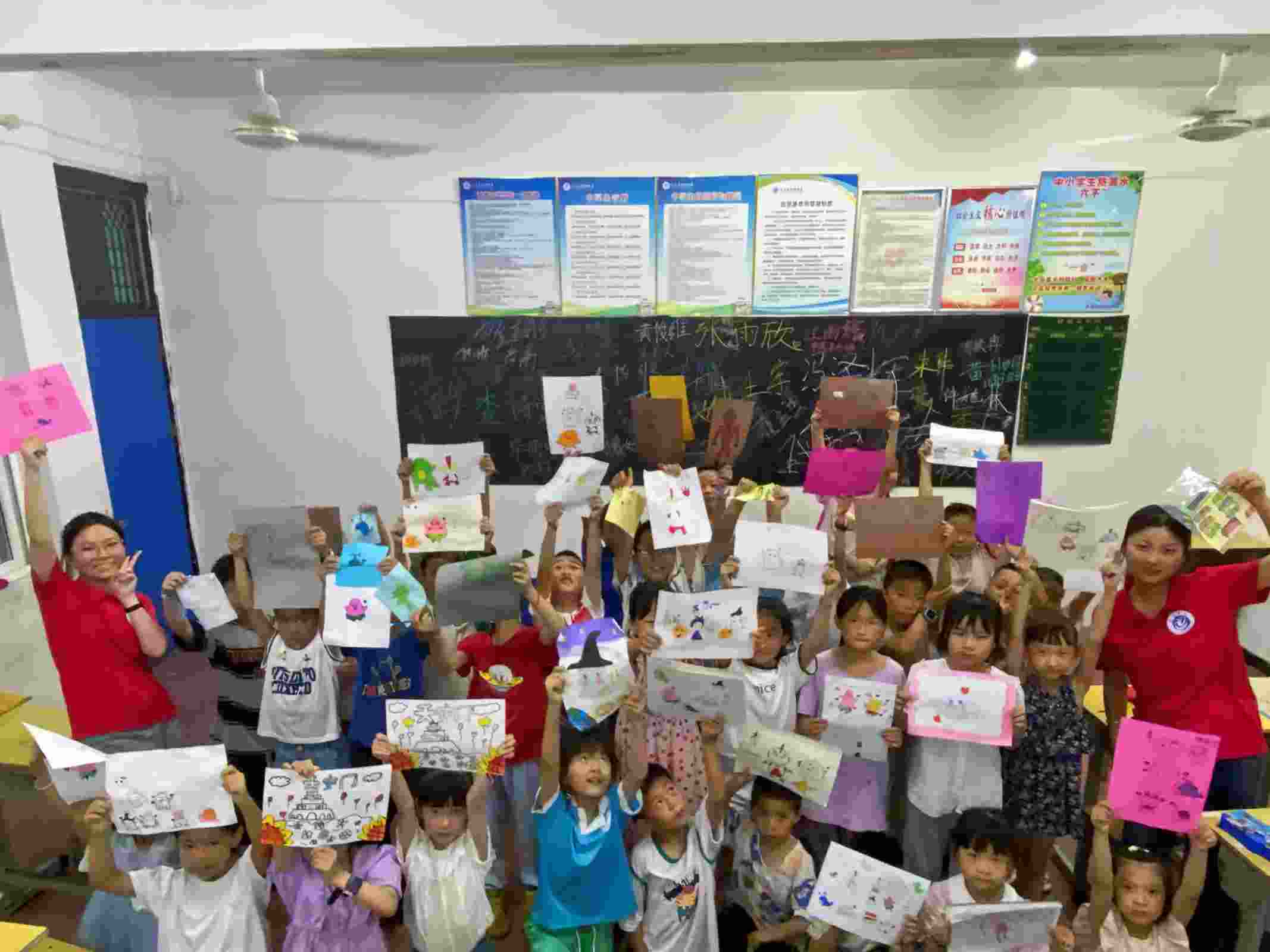 繪畫在孩子們眼中就像繽紛的彩虹,孩子們可以用它編織七彩的夢,每個孩子心中都有一支美妙的畫筆,畫出夢想,畫出未來,畫出自己眼中的美麗世界。2023年7月8日,赴池州市香隅鎮初級中學志愿服務隊成員帶領同學們一起學習繪畫。