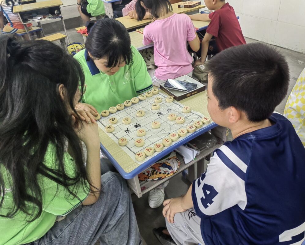 圖為象棋課上志愿者老師與學(xué)生對弈。湖北醫(yī)藥學(xué)院 朱婧 供圖