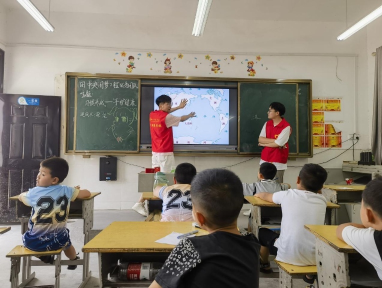 為深入貫徹黨的二十大精神以及習近平新時代中國特色社會主義思想,大力弘揚學習雷鋒、服務他人、提升自己的志愿服務精神,湖北醫藥學院星火筑夢暑期社會實踐隊來到十堰市丹江口市六里坪鎮蒿口村蒿口小學開展為期14天的社會實踐。7月9日是支教活動開展的第一天,今天的主要課程是手工,音樂,國學經典,詩歌,書法以及心理健康。志愿者們熱情滿滿,學生們興致勃勃,通過與學生互動、交流,建立起了深厚的師生關系,成為孩子們成長道路上的良師益友。