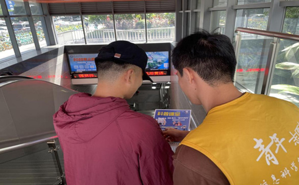 面對數字技術給老年人生活帶來的挑戰,首要任務便是厘清老年人數字鴻溝的表現形勢、分析老年人群體數字化生存面臨的困難。“數字嘉創”實踐隊制作了關于老年人數字鴻溝問題的宣傳單和線下問卷,并選擇了地鐵站、公交站、社區以及護理院人流量大的地點進行線下宣傳和問卷調查。走進群眾生活,深入老年人群體本身,了解他們在日常生活中遇到的真實情況和真正需求。