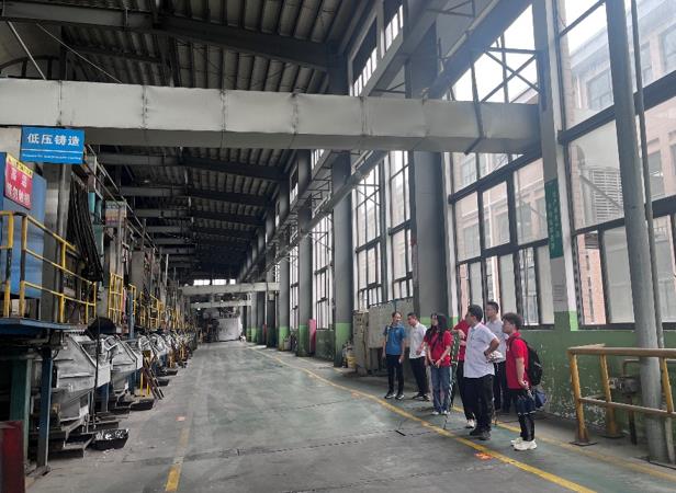 圖為公司工作人員在展廳展示公司產品最后,實踐隊走進生產車間,實地觀看和感受了生產加工鑄造等相關工藝流程和自動化生產設備,并與生產一線工人進行了深入地交流,詳細地了解了工人的工作內容,對企業先進的生產工藝有了更深刻地理解 。