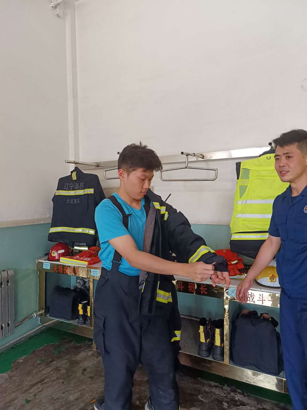 為了增強消防安全意識,學習消防安全知識。安徽工業大學冶金工程學院赴大連社會實踐團隊走進甘井子區泡崖消防救援大隊學習消防知識,體驗消防設施、設備、零距離感觸消防隊員們的裝備、感知消防隊員們真實的工作狀態。在消防隊員的帶領下,參觀了消防車,了解了消防車的性能、用途以及消防車上各種器具的名稱和用途,包括高壓噴射槍、呼救器、滅火器等各種器具。并演示了1分鐘整裝出發,井然有序、干凈利落的動作讓大學生看的目不轉睛,贊嘆不已。為了更好地感受消防隊員的生活,消防員還特意讓志愿者也體驗了一把“消防癮”,穿鞋、提褲、套外套、扣帽子、系腰帶等,這些看似簡單的動作完成起來其實并不輕松。