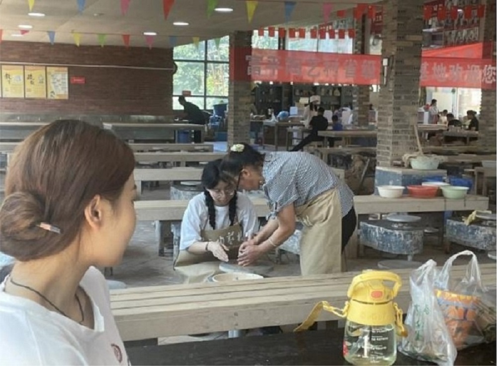 領(lǐng)略了陶藝的多彩魅力之后,實(shí)踐團(tuán)隊(duì)來到陶藝體驗(yàn)基地,親自體驗(yàn)制陶。在陶藝技師的指導(dǎo)下,隊(duì)員充分發(fā)揮自身想象力進(jìn)行創(chuàng)作,感受制陶的樂趣。