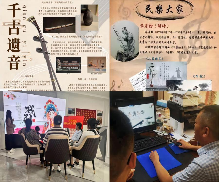 無錫民間音樂文化底蘊深厚,為了讓更多民眾自覺了解和探索無錫民間音樂文化,傳承和發揚民樂的傳統和精髓,團隊成員們結合查閱資料,設計無錫民間音樂文化宣傳展板,深入社區進行民樂保護與傳承理論宣講分享,通過一個較為完整的社會實踐,為傳承發展無錫的民間音樂文化貢獻青春力量。“我們設計的藝術展板分四大板塊。第一板塊‘千古遺音’,以時代為序,用呈示重要音樂文物的方式,對古代中國音樂各個時段的重要音樂現象給予介紹;第二板塊‘太湖美韻’為近現代主要是無錫地方民樂的呈現;第三板塊‘民樂大家’為無錫籍音樂家的介紹;第四板塊‘國風千年’是世界級“非物質文化遺產”中中國音樂、戲曲有關內容的展呈。”在無錫市祝塘鎮文林社區,團隊成員高原向社區民眾耐心介紹道。“越了解無錫民間音樂,越熱愛無錫。越熟悉傳統文化,越熱愛中華文化。”計算機212班張陽說,希望盡自己的努力,保留傳統,讓更多人知道無錫民間特色音樂。