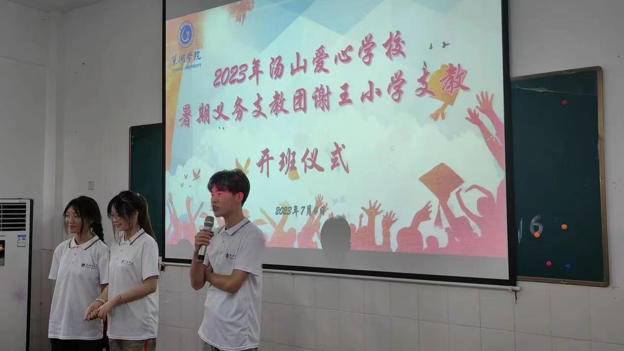 7月4日,巢湖學院湯山愛心學校大學生義務支教團赴謝王小學開始了第一天的暑假支教生活,為小朋友們帶來了豐富多彩的暑期課程。課程內容涵蓋了科學探索、手工制作、體育拓展、國學文化等多個方面,既結合了志愿者自身的專業能力與性格特點,又結合了小朋友們的興趣愛好,為小朋友們搭建了一個豐富的課堂。這是湯山愛心學校支教團與巢湖市謝王村謝王小學一起攜手走過的第17年,每位支教團成員滿懷信心,能夠繼續承前啟后,賦予青春魅力。