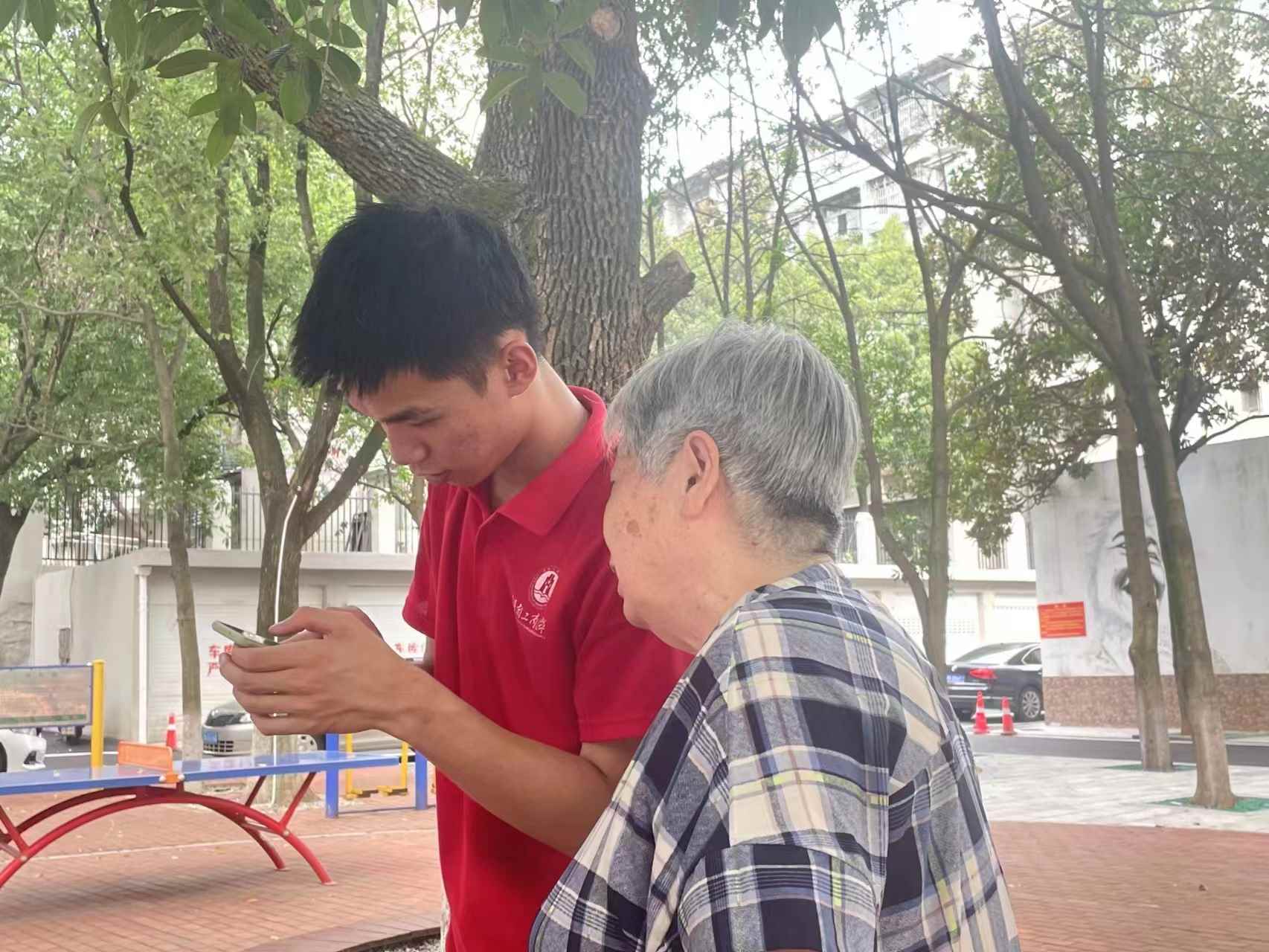 圖為黨建逐夢小分隊成員教社區居民使用智能手機(張恒錦 攝)