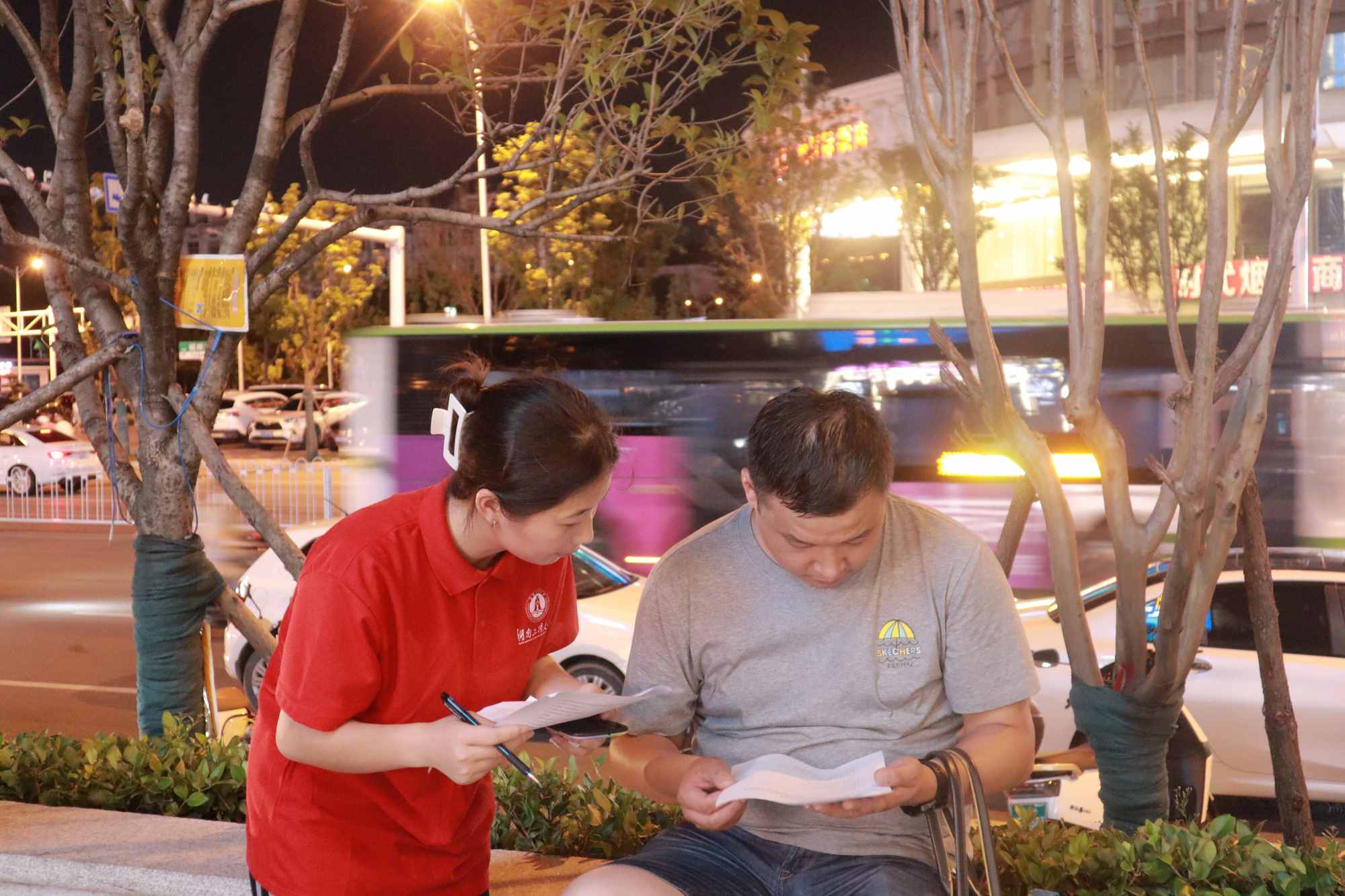 圖為黨建逐夢小分隊發放問卷調研(張恒錦 攝)