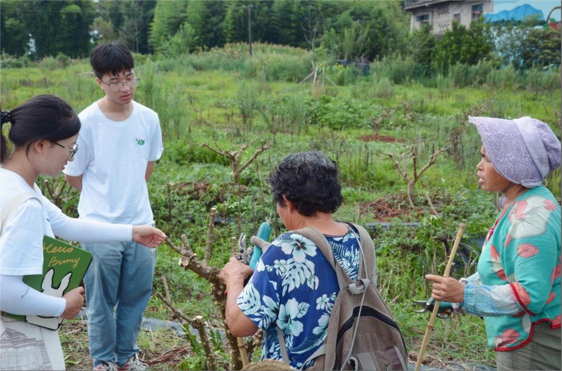 實踐團(tuán)成員在學(xué)習(xí)修剪青花椒枝葉(成員李陽 攝)