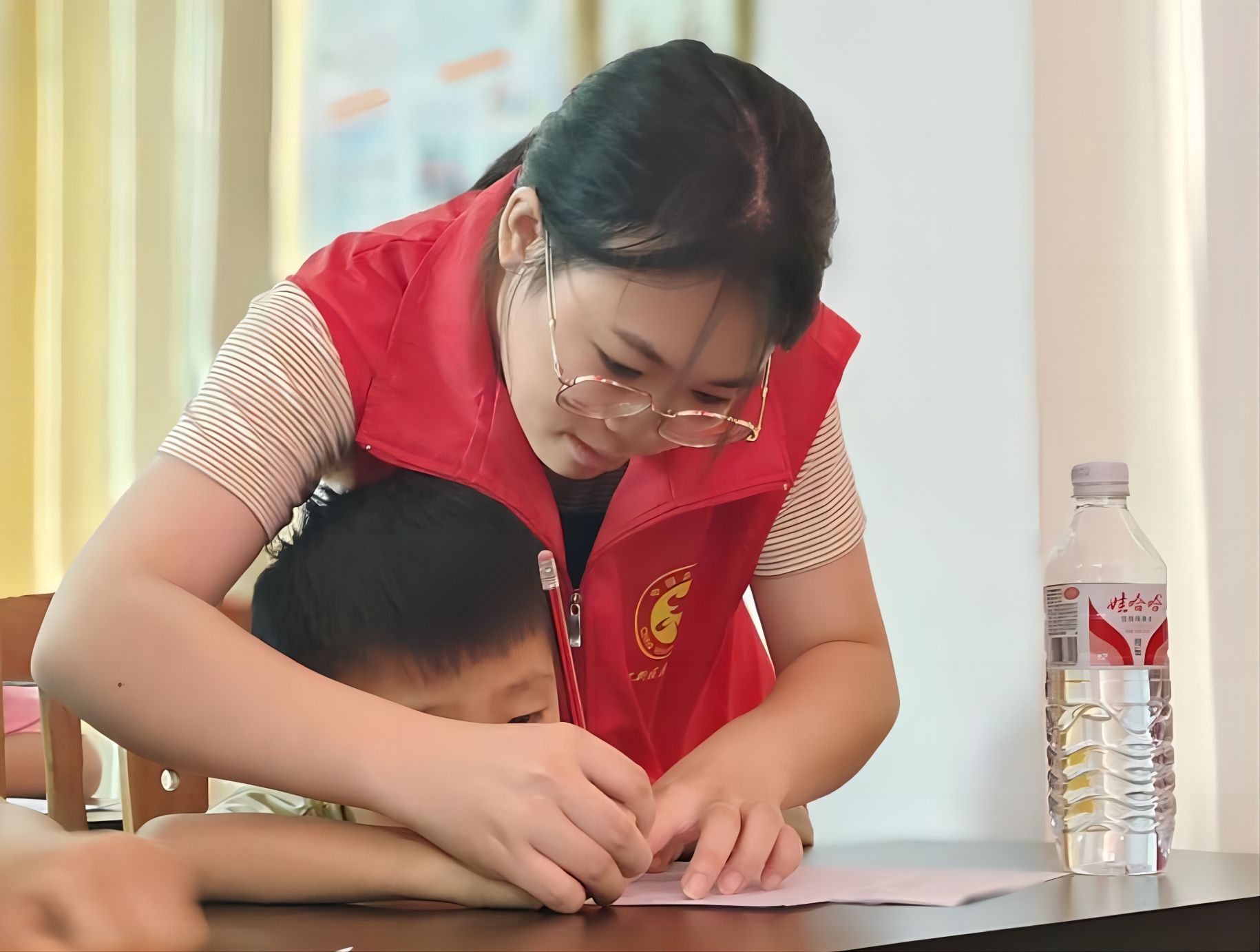 在每天的硬筆書法教學環節中,志愿者們會教授孩子們基礎的握筆姿勢、筆畫順序、字體結構等內容,鍛煉他們的書寫能力,養成良好的書寫習慣。孩子們專心致志地拿著手中的筆在紙上一筆一劃的練習,志愿者們在一旁進行指導,對他們優秀認真的表現給予肯定和稱贊。孩子們在書法課程中糾正了不良的書寫習慣,專注寫好每一橫豎撇捺。