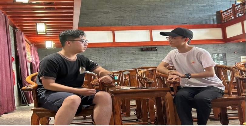 圖為團(tuán)隊(duì)成員參觀中國評書評話博物館。