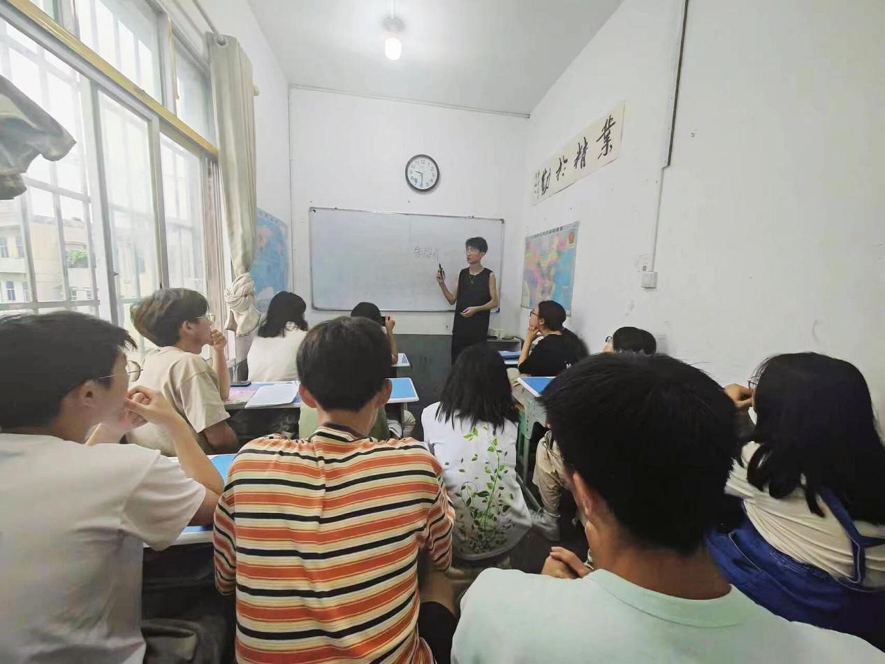 愛以團結(jié),行才致遠。8月7日,在正式開始招生之前,七彩鄉(xiāng)村促進會理事長楊世禹、七彩鄉(xiāng)村促進會志愿者陳珍和支教隊隊長許榆然給支教隊員們進行了為期一天的培訓(xùn),作為正式支教前的最后培訓(xùn)。培訓(xùn)過程中隊員開展最后的試講,并相互提出試講中出現(xiàn)的問題進行探討修改,力爭展現(xiàn)支教隊的最好風(fēng)采。