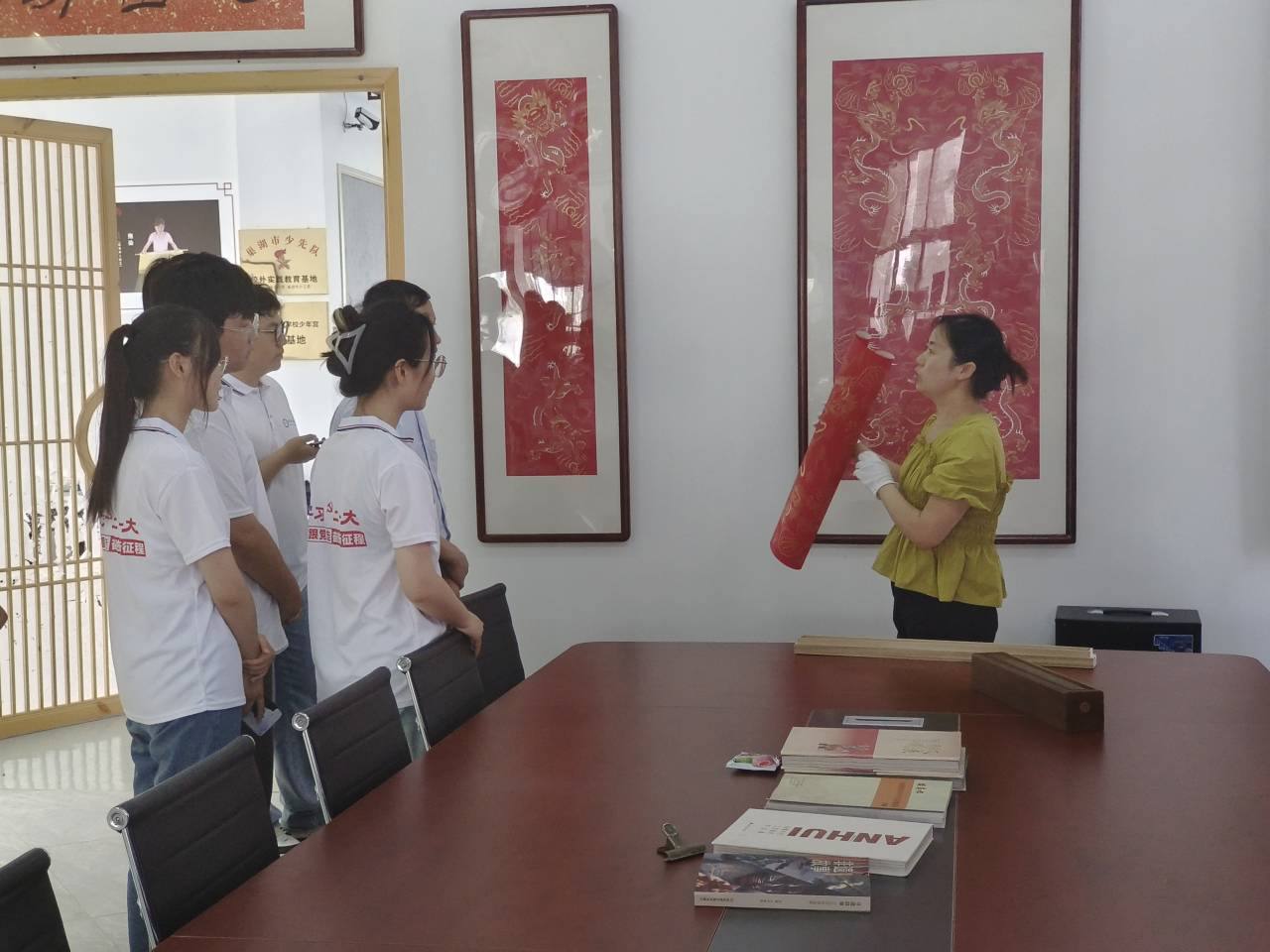 圖為團隊成員在巢湖博物館學習紙箋加工技藝的相關知識。通訊員 陳浩楠 供圖